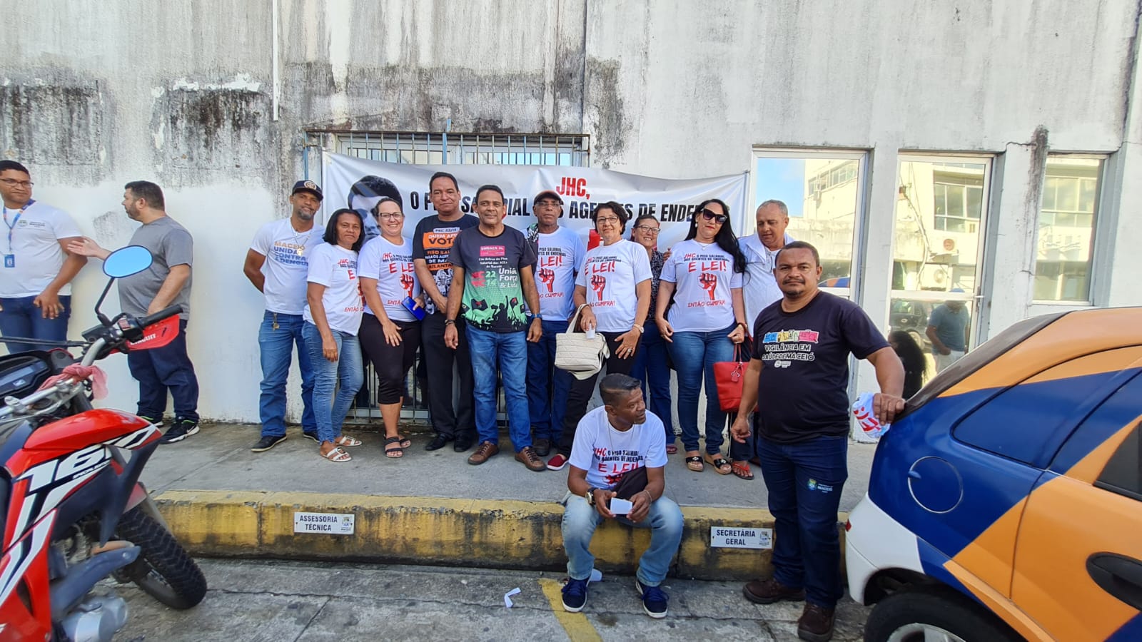 “Não vamos sair enquanto o prefeito JHC não sentar com as lideranças e apresentar uma proposta séria de implantação do piso salarial nacional como remuneração inicial da carreira”, explica o presidente do Sindicato dos Agentes Comunitários de Saúde de Alagoas (Sindacs-AL), Nelson Cordeiro, durante o segundo dia de ocupação da Secretaria Municipal de Economia e de Gestão de Maceió, que aconteceu nesta quinta-feira (1º), no Centro.